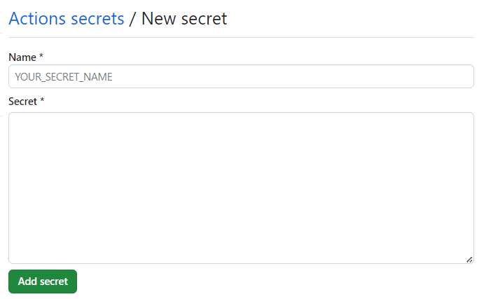 New repository secret 버튼을 눌러 숨기고 싶은 키 값을 저장할 수 있다.