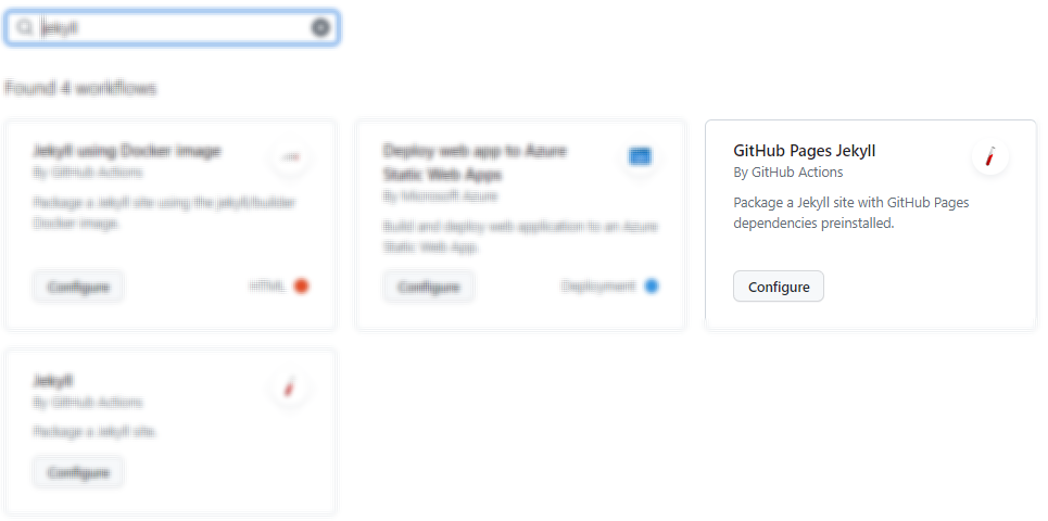 New workflow에서 jekyll을 검색해 나오는 GitHub Pages Jekyll을 수정했다.